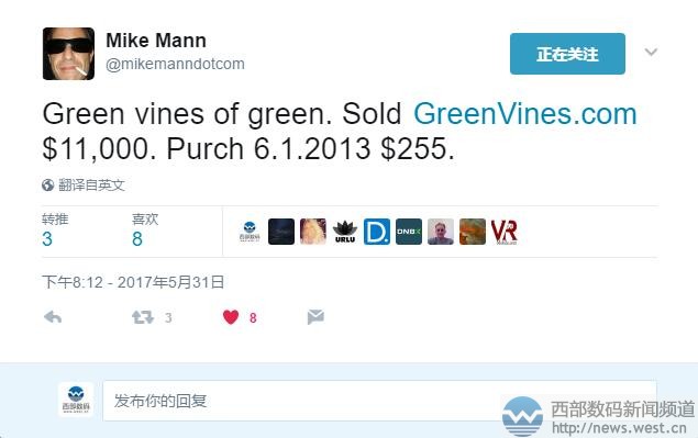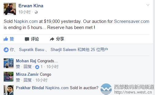 “餐巾纸”域名以13万元结拍!“绿色藤蔓”卖出五位数美元西部数码(west.cn)6月2日消息,小编在社交媒体上发现,英文域名napkin.com和Greenvines.com分别以19,000美元和11,000美元成交了,后者乃是海外知名投资人Mike Mann所售。