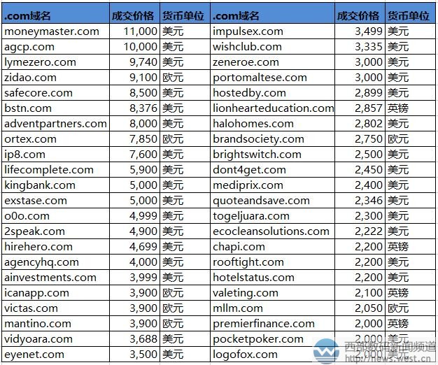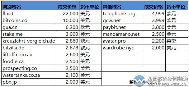 Sedo交易榜:意大利域名夺得冠军!“比特币”域名bitcoins.co拍出五位数!西部数码(west.cn)7月6日消息,最新一期的sedo交易榜出炉,本期上榜的域名共有61个,其中卖价最贵的是意大利国别域名flix.it,成交价为22,000美元,约合人民币15万元。