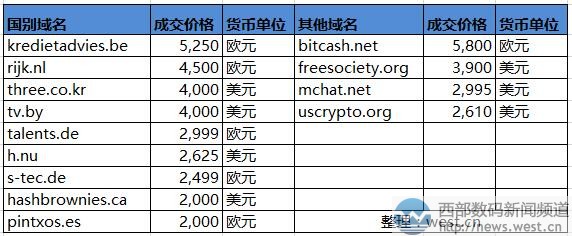 本期国别域名交易情况也比较一般。成交价最高的是比利时域名kredietadvies.be,以5250欧元结拍。另外,域名three.co.kr和tv.by都拍了4000美元。其中,.co.kr是韩国本土域名,.by是白俄罗斯域名。