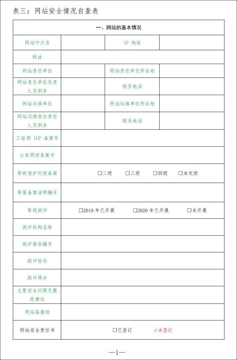 2020 年公安机关网络安全监督检查自查表-填表说明